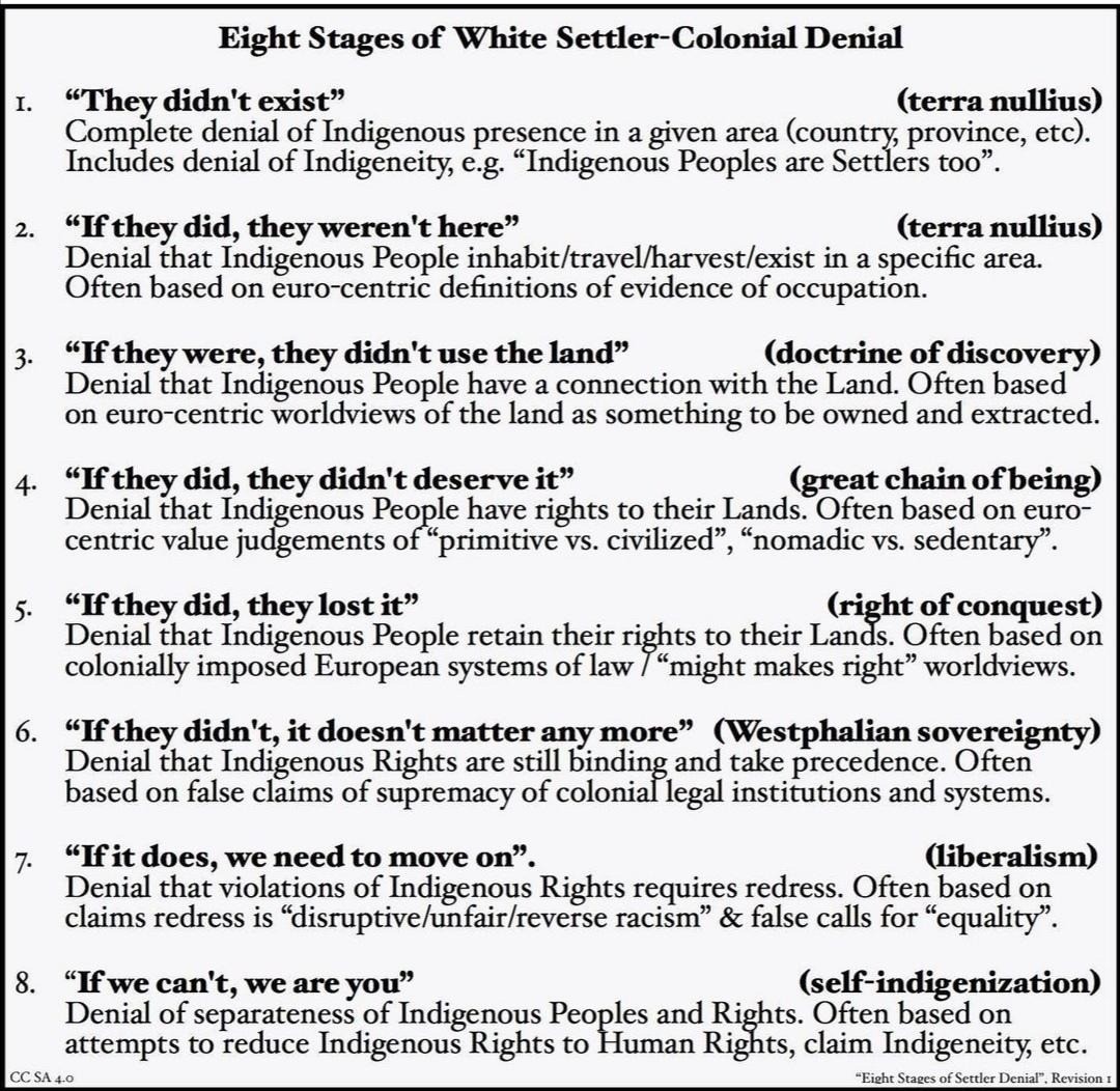 Very useful list, The Eight Stages of White Settler-Colonial Denial.